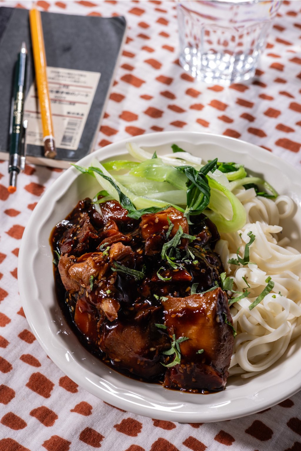 Tento masový pokrm obsahuje sóju a sezam. Je kořeněný, nikoliv pikantní.Doporučujeme s černou či bílou jasmínovou rýží, nebo s rýžovými nudlemi.